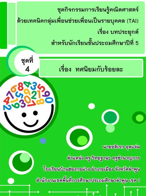 ชุดกิจกรรมการเรียนรู้คณิตศาสตร์ด้วยเทคนิคกลุ่มเพื่อนช่วยเพื่อนเป็นรายบุคคล(TAI) เรื่อง บทประยุกต์ ผลงานครูอดิเรก อุดแจ่ม