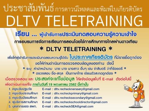ประชาสัมพันธ์เรื่องการดาวน์โหลดและพิมพ์ใบเกียรติบัตร DLTV TELETRAINING